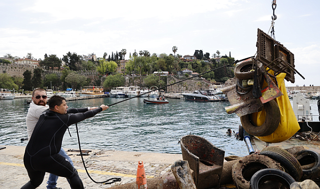 Antalya Büyükşehir Belediyesi öncülüğünde Kaleiçi Yat Limanı’nda gerçekleştirilen deniz dibi temizliği çalışmasında yaklaşık 5 ton atık çıkarıldı.