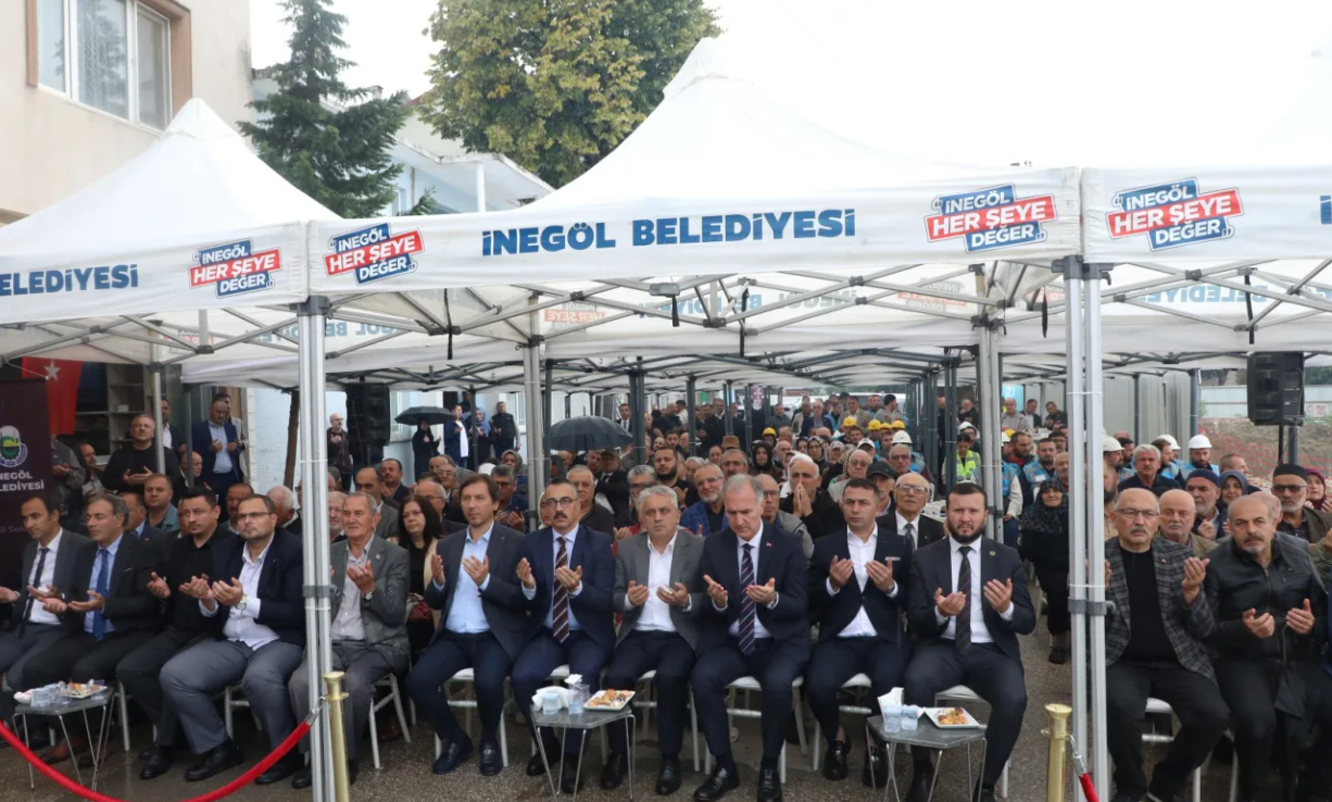 Temel atma töreninde kürsüye gelen İnegöl Belediye Başkanı Alper Taban ise şehrin kentsel dönüşüm serüveni ve temeli atılan projeye ilişkin bilgiler paylaştı.