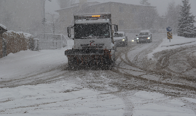 Bayburt’ta etkili olan kar yağışı nedeniyle belediye ekipleri, ana arterler ve mahalle yollarında kar küreme ve tuzlama çalışmalarına devam ediliyor.