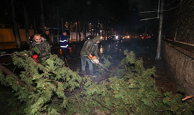 Buca Belediyesi, kent genelinde etkili olan şiddetli yağış ve fırtına nedeniyle tüm birimleriyle saha çalışmalarına devam ediyor.