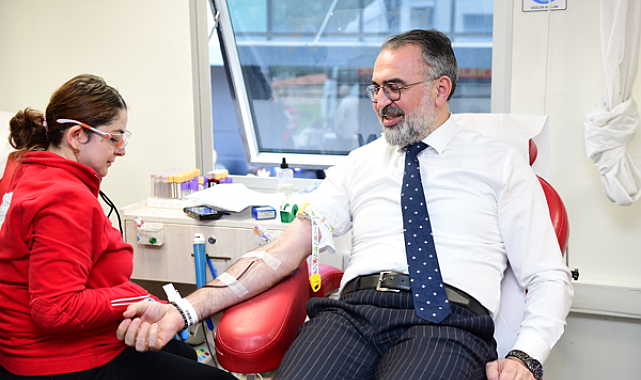 Kestel Belediye Başkanı Ferhat Erol, Türk Kızılay Kestel Şube Başkanlığı önünde konuşlanan tırda kan bağışında bulundu.