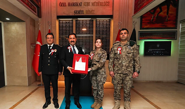 Hatay Valisi Masatlı, Türk Polis Teşkilatı’nın 181. kuruluş yıl dönümü ve Polis Haftası kapsamında Hatay İl Emniyet Müdürlüğü Özel Harekat Şube Müdürlüğü’nü ziyaret etti.Ziyaret sırasında şehit Murat Bulkan’ın kızı Polis Memuru Edanur Bulkan Eroğlu’na Türk bayrağı takdim edildi.Vali Masatlı, “Şehidimizin emaneti olan Edanur Bulkan Eroğlu’nun babasından devraldığı kutsal görevi aynı inanç, kararlılık ve vatan sevgisiyle sürdürmesi büyük bir gurur ve iftihar vesilesidir” dedi.Masatlı ayrıca, “Devletimiz şehitlerimizin emanetlerinin her daim yanındadır. Şehitlerimizin aziz hatırasını yaşatmaya devam edeceğiz” ifadelerini kullandı.Vali Masatlı, “Başta Hatay’da görev yapan kahraman polislerimiz olmak üzere, Emniyet Teşkilatımızın 181. kuruluş yıl dönümünü ve Polis Haftası’nı kutluyorum” dedi.Ziyarette Hatay İl Emniyet Müdürü Rüştü Yılmaz da yer aldı.