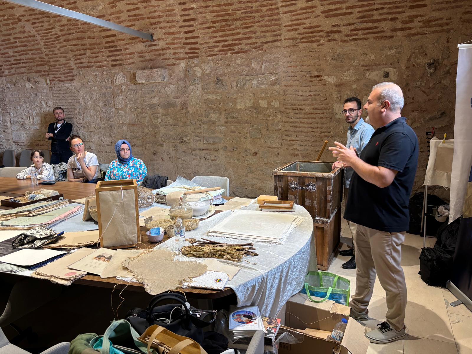 Kâğıt Müzesi ekibi ve müze görevlileri, kâğıdın tarihsel serüvenini anlatarak geleneksel yöntemlerle kâğıt yapımını uygulamalı şekilde gösterdi.