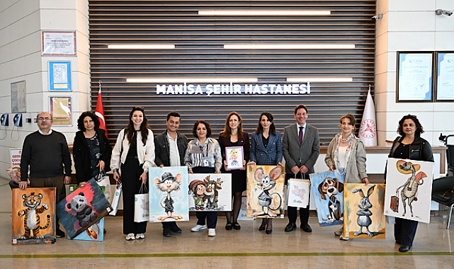 Manisa Büyükşehir Belediyesi Sanat ve Meslek Eğitimi Kursları (MASMEK) kursiyerleri tarafından hazırlanan çocuk temalı 101 tablo, Manisa’daki iki hastanenin çocuk servislerine teslim edildi.