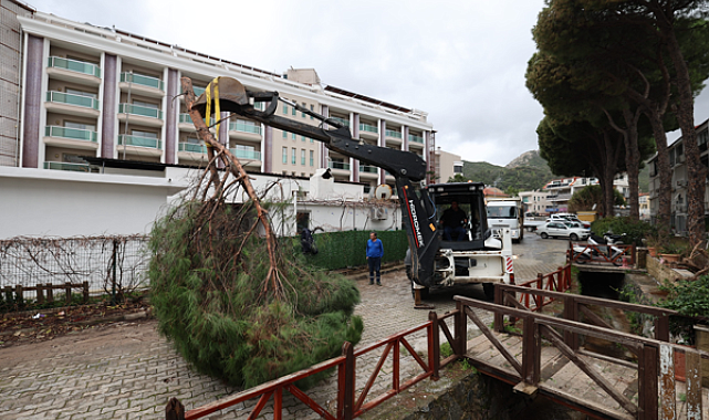 Marmaris Belediyesi ekipleri, yaklaşık 15 gündür etkisini sürdüren fırtına ve sağanak yağışlara karşı teyakkuz halinde görev yaptı. 15 gün boyunca devrilen 220 ağaca müdahale edildi, 40 kamyon atık toplandı.