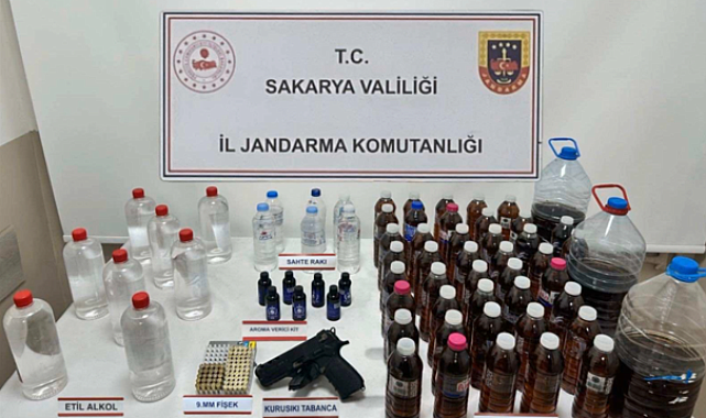 Sakarya İl Jandarma Komutanlığı ekipleri, sahte alkol üreterek piyasaya sürmeye hazırlanan bir şahısa yönelik operasyon düzenledi.