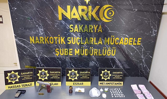 Sakarya Cumhuriyet Başsavcılığı koordinesinde uyuşturucuyla mücadele çalışmalarını sürdüren İl Emniyet Müdürlüğü ekipleri; Adapazarı ve Akyazı ilçelerinde belirlenen adreslere ve araçlara yönelik operasyonlar düzenledi. Toplam 7 ikamet ve 2 araçta yapılan detaylı aramalarda, uyuşturucu ticaretine yönelik çok sayıda materyal ele geçirildi.Operasyon kapsamında; 2 parça toplam daralı ağırlığı 179,45 gram gelen uyuşturucu madde yapımında kullanılan aseton maddesi, 47 parça toplam 89,81 gram gelen metamfetamin maddesi, 75 adet extacy hap, 23 gram sıvı halde uyuşturucu madde yapımında kullanılan a-m-2201 maddesi, 2 parça toplam 18,86 gram gelen sentetik cannobinoid maddesi, 7 adet sigara makaronlarına doldurulmuş vaziyette daralı 6.89 gram gelen sentetik cannobinoid, 2 parça halinde 4.75 gram esrar maddesi, 1 parça 0.04 gram a-m 2201 sentetik cannobinoid hammaddesi, 2 adet hassas terazi, 3 adet ruhsatsız tabanca, 9 adet fişek, uyuşturucu madde ticaretinden elde edildiği değerlendirilen 40 bin TL para ele geçirildi.Adli süreç sonucunda yakalanan 8 şüpheliden 2'si ifadelerinin ardından serbest bırakıldı. Mahkemeye sevk edilen şahıslardan 1'i adli kontrol şartıyla serbest kalırken, 5 şüpheli tutuklanarak cezaevine teslim edildi